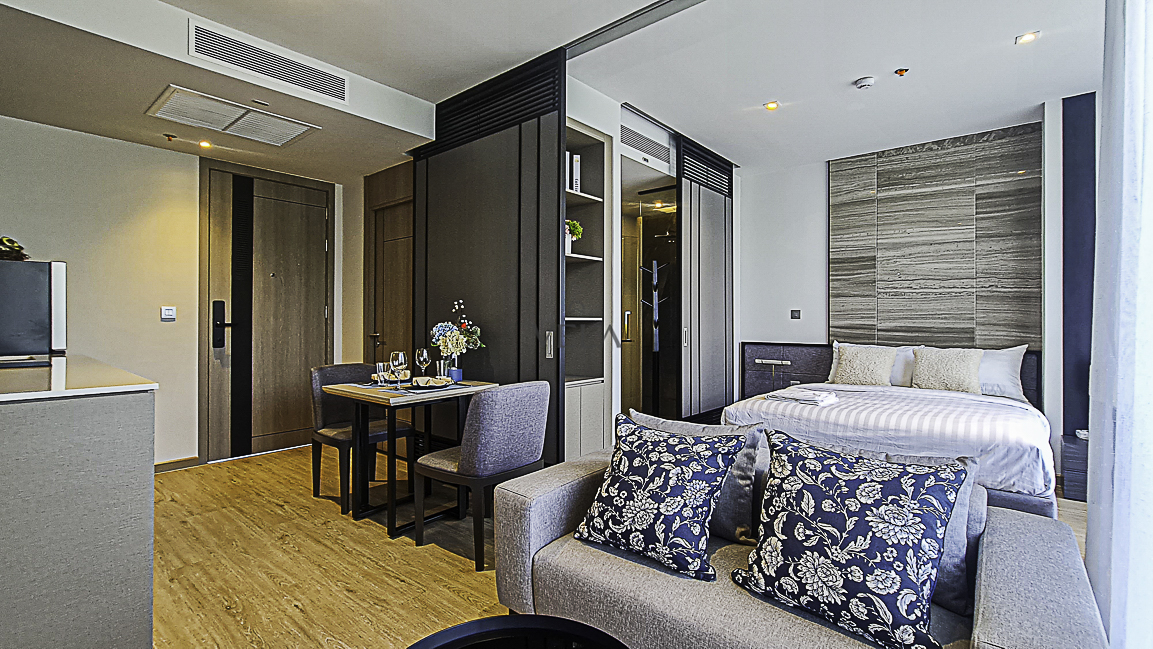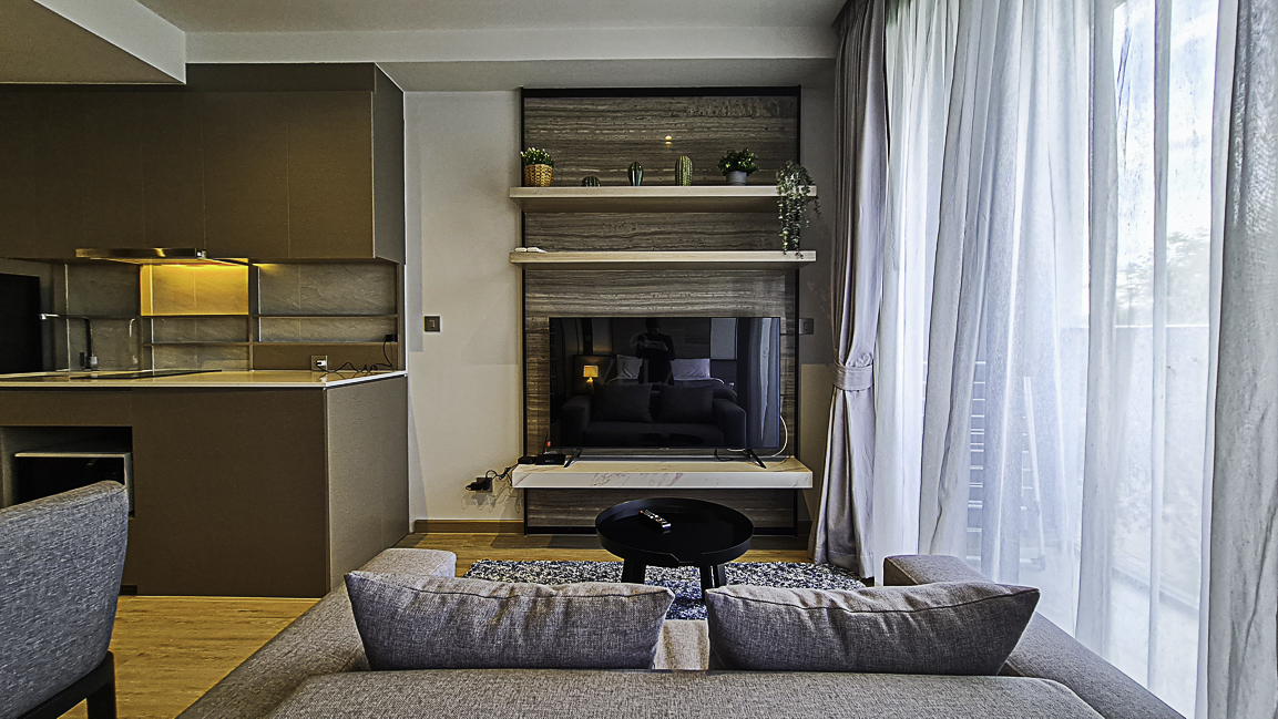 There are a total of 36 floors the 3rd-23rd and 26-35th of which are floors on which rooms are situated. On the 24th and 25th floors are the common facilities, including the billiards room, infinity pool, gym, and movie theater. It lies in a quiet neighborhood with lush green surroundings.