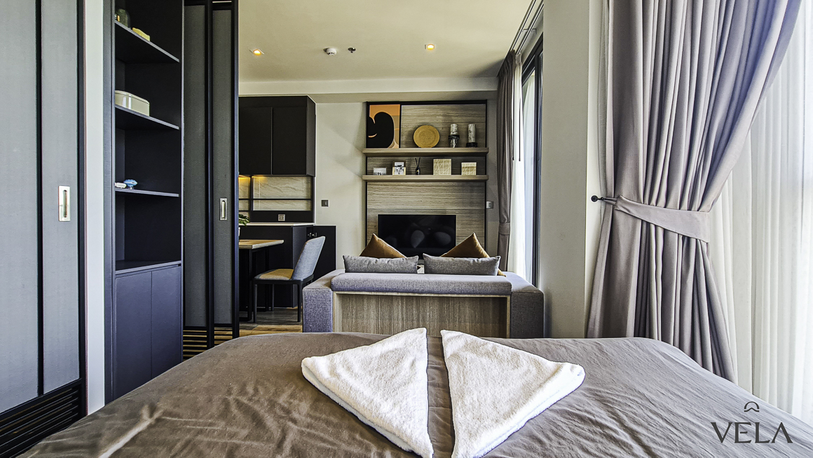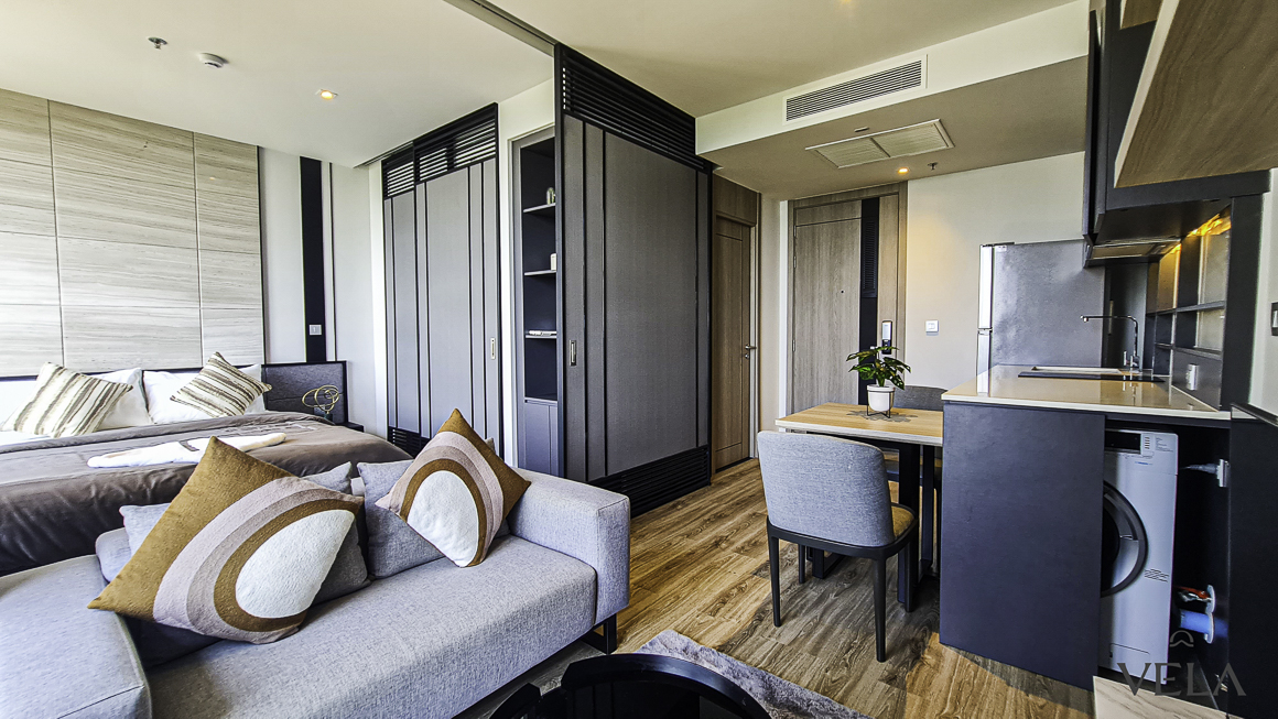 There are a total of 36 floors the 3rd-23rd and 26-35th of which are floors on which rooms are situated. On the 24th and 25th floors are the common facilities, including the billiards room, infinity pool, gym, and movie theater. It lies in a quiet neighborhood with lush green surroundings.